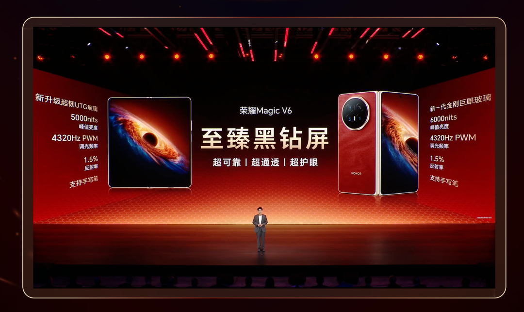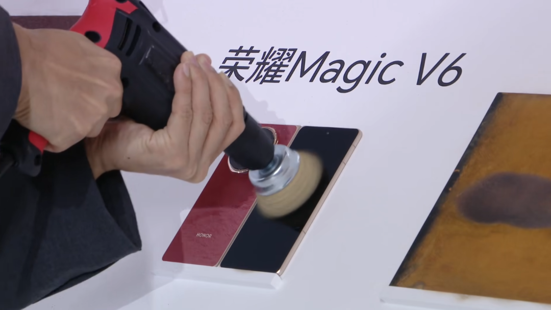 荣耀Magic V6发布会还来了一出电钻实测,屏幕完好无损。